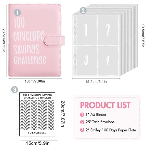 Deze uitgebreide besparingsset bevat alles wat je nodig hebt: een compacte A5-map, een 100-dagenplanner en transparante vakken voor alle 100 enveloppen. Met de overzichtelijke indeling houd je gemakkelijk je dagelijkse spaarvooruitgang bij. De bijgeleverde kaartenorganizer zorgt er bovendien voor dat je al je belangrijke kaarten en documenten georganiseerd kunt bewaren.