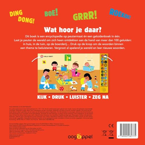 Met een druk op de knop activeer je de realistische geluiden, waardoor de plaatjes tot leven komen. De heldere illustraties en de eenvoudige bediening maken dit geluidenboek perfect voor jonge kinderen die de wereld om hen heen willen verkennen en begrijpen. “Mijn grote geluidenboek – 100 geluiden” is een educatief en vermakelijk cadeau dat de nieuwsgierigheid prikkelt en de fantasie stimuleert.
