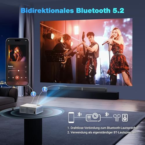 De beamer biedt een uitstekende kijkervaring met Full HD native 1080p resolutie en 4K ondersteuning. Dankzij de 5G wifi geniet u van stabiel en vloeiend streamen, gamen en het gebruik van diverse apps. De bidirectionele Bluetooth-connectiviteit maakt het eenvoudig om draadloos audioapparatuur aan te sluiten of de projector als Bluetooth-luidspreker te gebruiken. Het grote projectiescherm tot 300 inch en de zoomfunctie zorgen voor een flexibele en comfortabele kijkervaring, ideaal voor thuisbioscopen en presentaties.