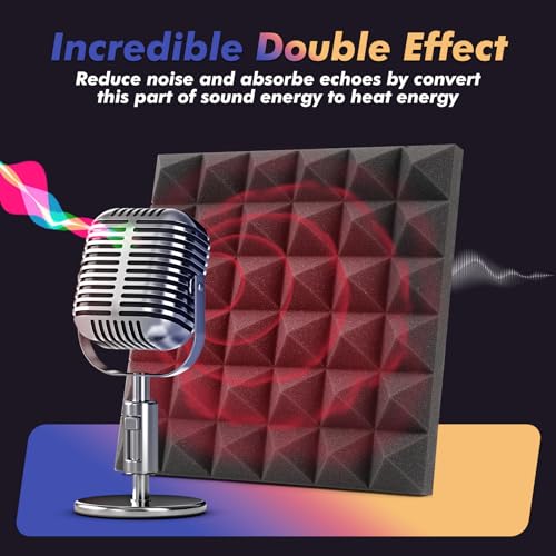 Verbeter de akoestiek in elke ruimte met deze set van 60 geluidsabsorberende panelen. De 5 cm dikke panelen, met hun piramidevormig oppervlak, zijn ontworpen om geluidsgolven effectief te absorberen en te voorkomen dat geluid weerkaatst. Dit resulteert in een aanzienlijk betere geluidskwaliteit en een rustigere omgeving.