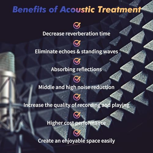 Gemaakt van hoogwaardig, zacht schuim, zijn deze panelen stofvrij en hebben ze een hoge dichtheid. Ze verminderen echo en nagalm, waardoor je geluid helderder en dynamischer wordt. Het flexibele materiaal is eenvoudig te installeren op muren, plafonds en deuren met behulp van nietjes, spijkers, schroeven, punaises of lijm.