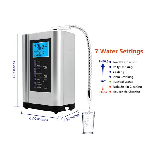 Ervaar optimaal water met dit geavanceerde waterfilter- en ionisatiesysteem. Het systeem is ontworpen met gebruiksgemak in het achterhoofd, zelfs voor ouderen, en biedt een helder 3,8-inch kleuren-LCD digitaal display. De watermachine monitort continu de waterstroom, filterlevensduur, pH-waarde en ORP-waarde, waardoor u altijd de controle heeft over de kwaliteit van uw water. Dankzij de intuïtieve aanraakbediening is het selecteren van de gewenste waterinstelling kinderspel.
