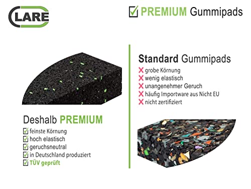 Deze rubberen matten zijn vervaardigd in Duitsland van 100% gerecycled, hoogwaardig materiaal en zijn TÜV-getest om te voldoen aan de hoogste kwaliteitsnormen. De montage is eenvoudig en vereist geen gereedschap. Dankzij hun duurzaamheid en temperatuurbestendigheid zijn ze geschikt voor zowel binnen- als buitengebruik en kunnen ze zelfs in commerciële omgevingen worden ingezet.