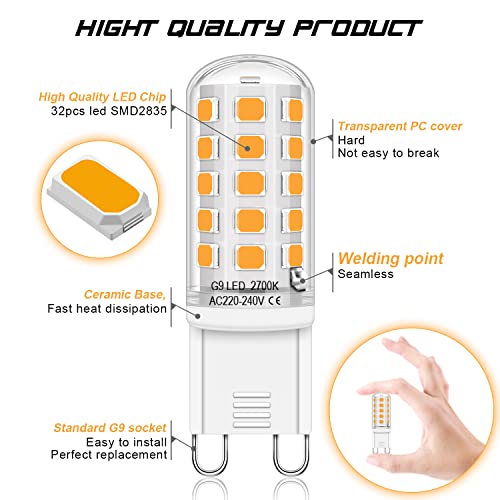 Deze G9 LED lamp verbruikt slechts 4W en produceert 400 lumen aan helderheid. Dit maakt het een uitstekende vervanging voor traditionele halogeenlampen van 30W, 35W of 40W, waardoor u tot wel 90% op uw elektriciteitsrekening kunt besparen. De installatie is eenvoudig: u verwijdert de oude lamp en plaatst de nieuwe G9 LED lamp in de fitting. De lamp is direct klaar voor gebruik en geeft onmiddellijk een helder en consistent licht.