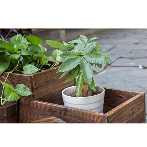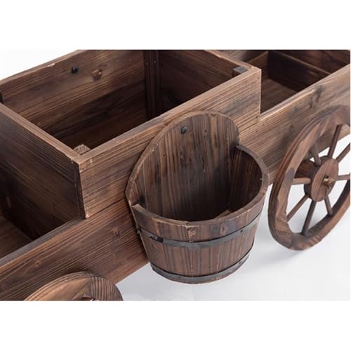 De bloembak heeft een decoratieve en rustieke stijl, waardoor hij een mooie toevoeging is aan elke tuin of terras.