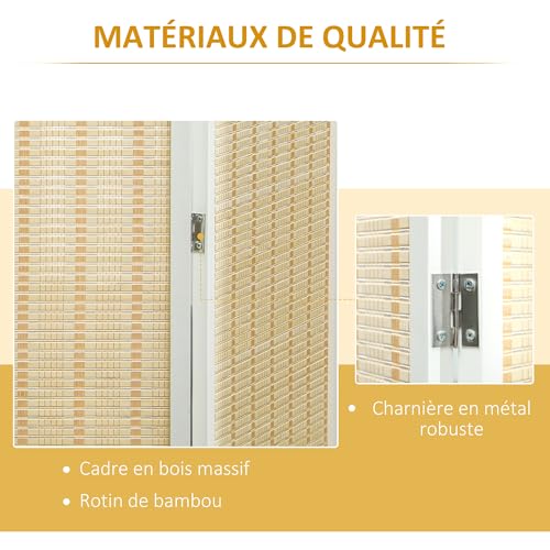 Creëer eenvoudig een afgescheiden en sfeervolle ruimte met deze stijlvolle kamerverdeler. Het kamerscherm bestaat uit vier panelen en is ideaal om privacy te creëren in bijvoorbeeld een slaapkamer, woonkamer of kantoor. Het natuurlijke design, met een houten frame en bamboe vlechtwerk, geeft een warme en rustieke uitstraling aan elke ruimte.