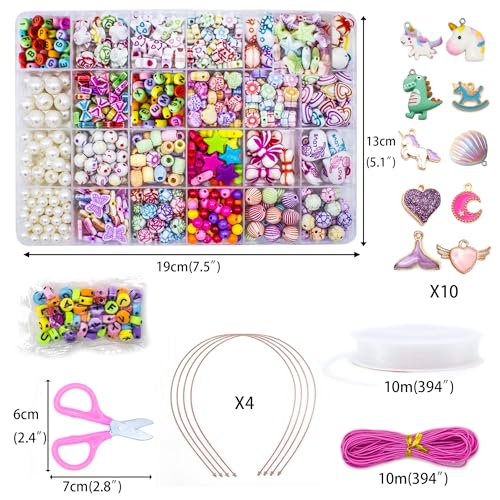 Naast de vele kralen wordt de set geleverd met alle benodigde accessoires om direct aan de slag te gaan. Denk hierbij aan een kristal elastische lijn van 10 meter, een veilige kinderschaar, een haarband en diverse hangeraccessoires. De 24 verschillende soorten kralen zijn overzichtelijk opgeborgen in een handige opbergdoos met 24 vakken, wat het opruimen en bewaren gemakkelijk maakt. Deze knutselset is een fantastisch cadeau voor meisjes die graag creatief bezig zijn en hun eigen sieraden willen maken.