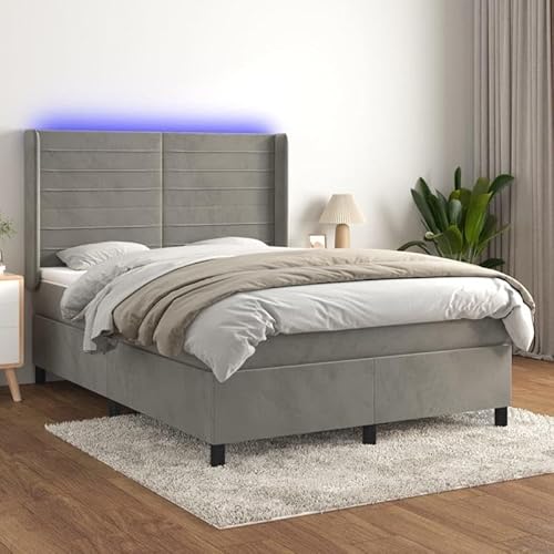 Ervaar ultiem comfort en stijl met dit lichtgrijze boxspringbed (140 x 190 cm), bekleed met hoogwaardig fluweel. De luxe, zachte materiaalmix garandeert een lange levensduur en biedt dagelijks comfort. Dankzij het geïntegreerde, in hoogte verstelbare hoofdeinde is dit bed perfect voor kleine slaapkamers, en biedt het optimale rugondersteuning bij het lezen of televisie kijken. Het moderne design met kleurrijke strepen sluit aan bij de woontrends van 2025 en maakt van je slaapkamer een elegante ruimte.