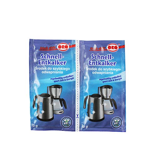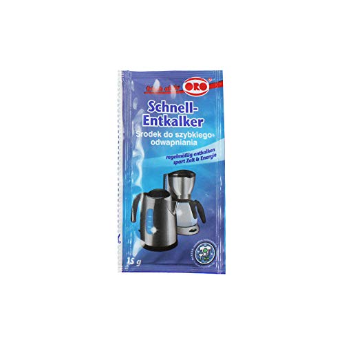 Met ORO fix snelontkalker poeder verwijdert u moeiteloos kalkaanslag uit uw koffiezetapparaat en waterkoker. De speciale foodgrade formule zorgt voor een grondige reiniging, waardoor uw apparaten langer meegaan en efficiënter werken. Regelmatig ontkalken bespaart energie en zorgt voor een optimale werking van uw huishoudelijke apparaten. De verpakking bevat 10 zakjes van 15 gram.