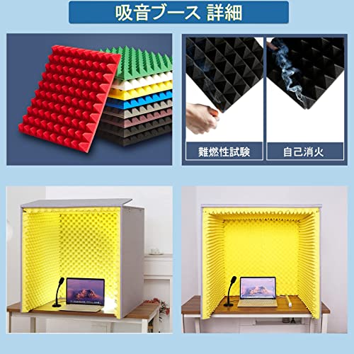 De akoestische panelen zijn vervaardigd met milieuvriendelijke polyurethaan geluidsschuimvulling, met een dichtheid van 50 lbs per kubieke meter. Dit materiaal biedt effectieve geluidsabsorptie zonder schadelijke stoffen, waardoor het veilig is voor gebruik in elke omgeving. Het lichte en compacte ontwerp maakt de zangcabine eenvoudig te verplaatsen en op te bergen. De snelle en simpele montage zorgt ervoor dat u binnen een minuut klaar bent om te beginnen met opnemen.