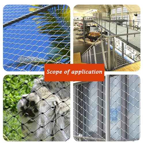 Dit zware veiligheidsnet is vervaardigd uit duurzaam 304 roestvrij staal, met een gaasdraad die gevlochten en gewikkeld is voor extra stevigheid en een lange levensduur. Het roestvrijstalen touwnet heeft een draaddiameter van 2 mm en een maaswijdte van 3,5 cm. Door zijn flexibele vorm is het net eenvoudig aan te passen aan diverse constructies, van dierenverblijven en tuinomheiningen tot trappen en balkons. Het biedt een betrouwbare bescherming en voorkomt vallen, zowel bij dieren als mensen.