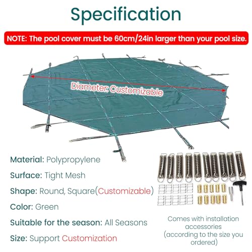 De hoogwaardige winterzwembadafdekking biedt een robuuste bescherming voor uw zwembad gedurende het hele jaar. Gemaakt van duurzaam PP-materiaal, combineert deze afdekking een goede taaiheid met slijtvastheid. De installatie is vereenvoudigd dankzij de meegeleverde montagegereedschappen, zoals messing ankers, haken en veren. Bovendien is de afdekking ontworpen om water gemakkelijk door te laten, waardoor optimale drainage wordt gegarandeerd.