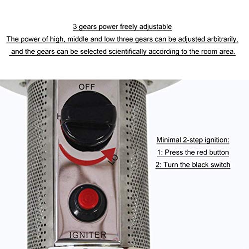 De kachel maakt gebruik van een roestvrijstalen gaasafdekking over de ovenkop, die bij verbranding snel roodgloeiend wordt. Dit verwarmt de omringende lucht, waarna convectie de warmte verspreidt. Een aluminium reflector draagt bij aan de efficiënte verwarming van de hele ruimte door de warmte gelijkmatig te verdelen. Let op: voor de werking is een 15 kg gastank, slang en drukregelaar vereist; deze zijn niet inbegrepen.
