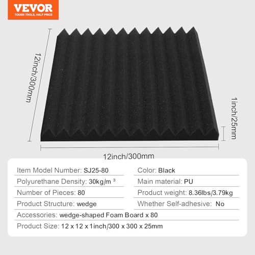 De installatie is eenvoudig en snel. Met behulp van lijm of spijkers bevestigt u de lichtgewicht panelen moeiteloos aan de wand. In slechts drie stappen geniet u van een verbeterde akoestiek. Deze set bevat 80 wigvormige schuimpanelen, waarmee u een oppervlakte van 80 sq.ft (ongeveer 7,4 m²) kunt bedekken. Pas de hoeveelheid aan uw specifieke behoeften aan en verfraai tegelijkertijd uw interieur.