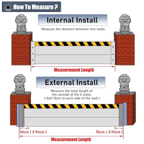 Voor interne installatie meet u de afstand tussen de twee muren. Voor externe installatie meet u de afstand tot de muur en voegt u 20 cm toe.