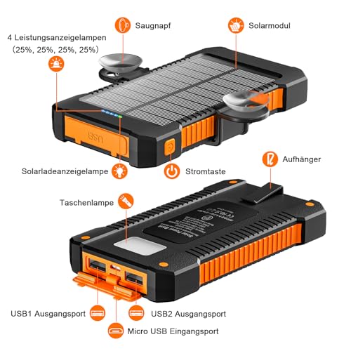 Wat deze powerbank extra bijzonder maakt, is de mogelijkheid om op te laden via zonne-energie. Dit is niet alleen milieuvriendelijk, maar ook handig als u geen toegang heeft tot een stopcontact. De meegeleverde zuignaphouder zorgt voor een optimale positionering om zonlicht op te vangen, bijvoorbeeld door hem aan een raam te bevestigen.